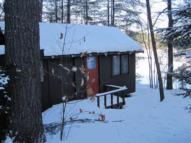 We went to the cottage for 2 days just before New Years and enjoyed lots of winter wonderland fun. As you can see from the last photo, we have to walk in to the cottage in the winter, pulling our food and clothes on toboggans. It is about 2.5 kilometers from the main road, where we park our car, so it isn't too far, and it certainly gets you some exercise and fresh air. It was -17 when we were walking in so it was a little nippy when I kept taking my gloves off to take photos because the lighting was soooo pretty.
