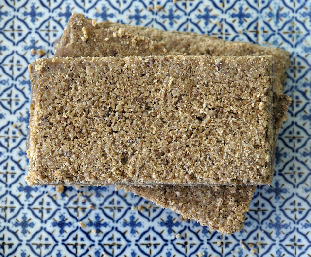 Method: 1. Combine ingredients with a fork. 2. Press lightly into a greased 9 x 13 inch pan. 3. Bake for 30 minutes at 325. 4. Score the squares as soon as you take them out of the oven, but don't remove from the pan until they are cool.